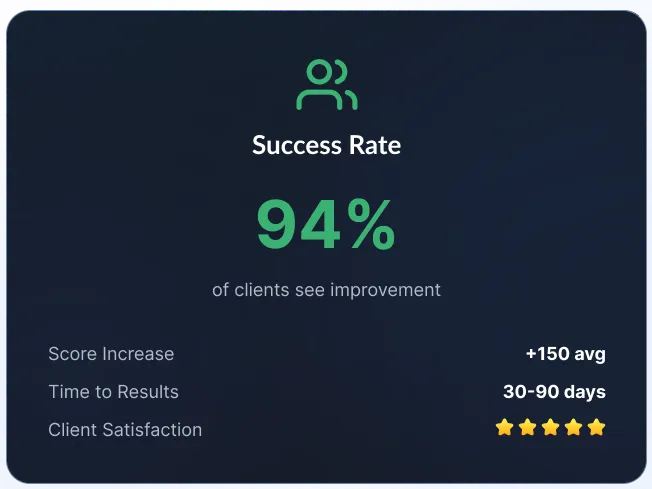 Proven track record with 1,000+ clients seeing score improvements in 30-90 days.